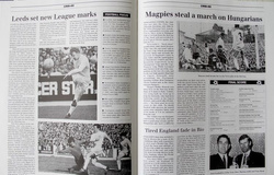 Opis: Jedno z pierwszych wydań Piłkarskiej Kroniki przygotowanej przez angielski dziennik "Daily Telegraph". W książce chronologicznie przedstawiono historię brytyjskiej piłki nożnej od jej początków w XIX wieku do roku 1993. Do roku 1900 dzieje wyspiarskiego futbolu zaprezentowano dekadami, a od początku XX wieku sezon po sezonie. Oprócz ciekawych informacji zamieszczono wiele archiwalnych zdjęć i wyniki najważniejszych meczów. W oddzielnych tekstach opisano przebieg kolejnych edycji Mistrzostw Świata oraz sylwetki najlepszych brytyjskich piłkarzy w poszczególnych dekadach. W Kronice nie zabrakło też polskich akcentów. Autor odnotował m.in. remis Polski z Anglią na Wembley w 1973 roku oraz strzelenie czterech goli przez Dariusza Dziekanowskiego w barwach Celtiku Glasgow w jednym z meczów europejskich pucharów. Książka w języku angielskim.