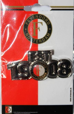 Opis: Oryginalna, fabrycznie pakowana, wydana przez holenderski klub piłkarski Feyenoord Rotterdam odznaka, nawiązująca do roku założenia tego klubu (1908). Została wykonana z metalu i polewy epoksydowej, jest mocowana na pin. Odznaka jest oficjalnym produktem klubu ze stadionu De Kuip.
