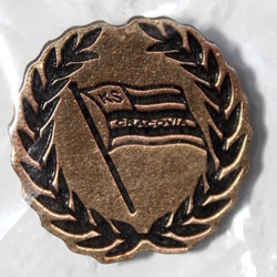 Opis: Oryginalna, fabrycznie pakowana, wydana przez klub KS Cracovia metalowa odznaka z herbem klubu otoczonym wieńcem. Jest mocowana na pin.