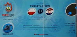 Opis: Oryginalny bilet z meczu fazy grupowej Mistrzostw Europy Austria Szwajcaria 2008, Chorwacja - Polska (1:0), który rozegrano 16.06.2008 w Klagenfurcie.