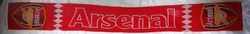 Opis: Wykonany techniką komputerową, dwustronny szalik słynnego angielskiego klubu piłkarskiego Arsenal FC. Widnieje na nim napis z nazwą klubu oraz loga klubowe.