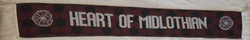 Opis: Wykonany techniką komputerową, dziany dwustronny szalik szkockiego klubu Heart of Midlothian. Widnieje na nim napis z nazwą oraz loga klubowe.