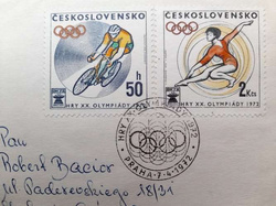 Opis: Dwie koperty ze stemplami pierwszego dnia obiegu (FDC) i znaczkami wydanymi przez pocztę Czechosłowacji z okazji Letnich Igrzysk Olimpijskich Monachium 1972.