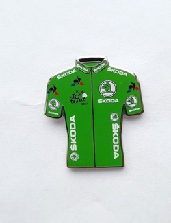 Opis: Odznaka w kształcie koszulki lidera klasyfikacji punktowej Tour de France. Jest to oficjalny produkt-pamiątka z tego wyścigu kolarskiego. Jest emaliowana i mocowana na pin.