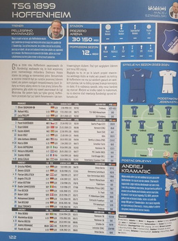 Opis: Przygotowany przez zespół redakcyjny "Przeglądu Sportowego" skarb kibica poświęcony pięciu najlepszym ligom europejskim: angielskiej Premier League, hiszpańskiej La Liga, włoskiej Serie A, niemieckiej Bundeslidze oraz francuskiej Ligue 1 w sezonie 2023/2024. Każda liga została zaprezentowana w ten sam sposób - rozdział zaczyna się zapowiedzią sezonu autorstwa eksperta (m.in. Radosław Gilewicz o lidze niemieckiej i Marek Jóźwiak o lidze francuskiej), następnie zaprezentowany jest terminarz, zespoły (sukcesy, kadra, sylwetka trenera i najważniejszej postaci zespołu, lista transferów), a także statystyki i historia. Całość jest bogato ilustrowana kolorowymi zdjęciami.