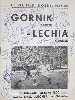 Program mecz Lechia Gdańsk - Górnik Zabrze, I liga (18.11.1984) z autografami piłkarzy