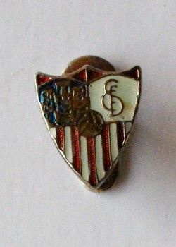 Opis: Stara odznaka hiszpańskiego klubu piłkarskiego Sevilla FC. Odznaka lakierowana, mocowana na kopyto.